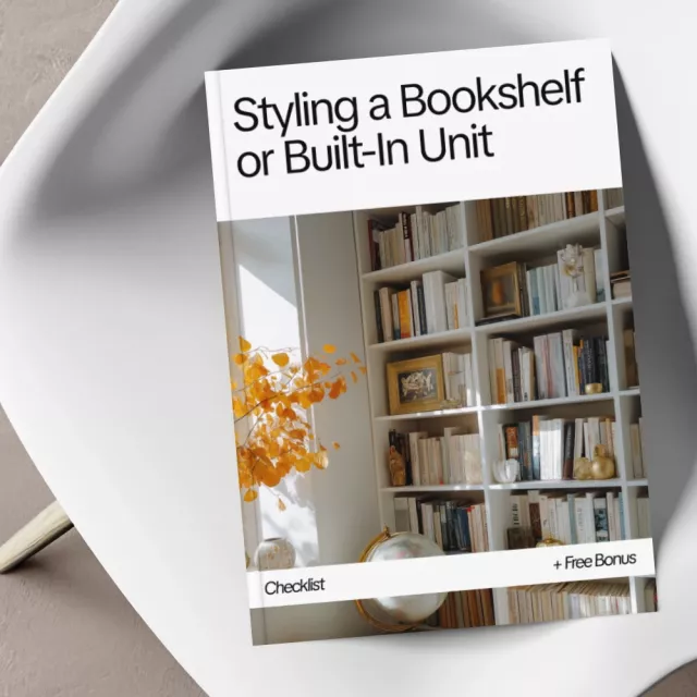 Turn your shelves into a beautiful focal point of your home. Download the Styling a Bookshelf or Built-In Unit checklist today and learn exactly how to style a bookshelf or built in unit using simple, designer-approved techniques.